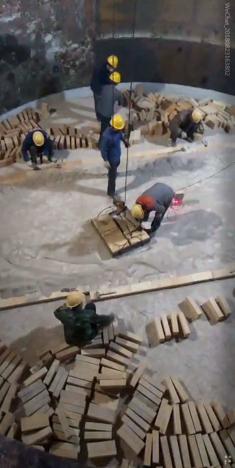 高鋁磚鋪爐底,爐底半選用石墨碳磚,爐池上部爐墻