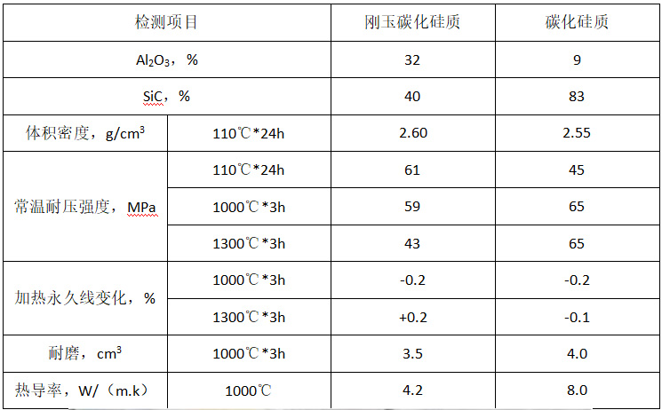表 1 剛玉-碳化硅、碳化硅質材料指標