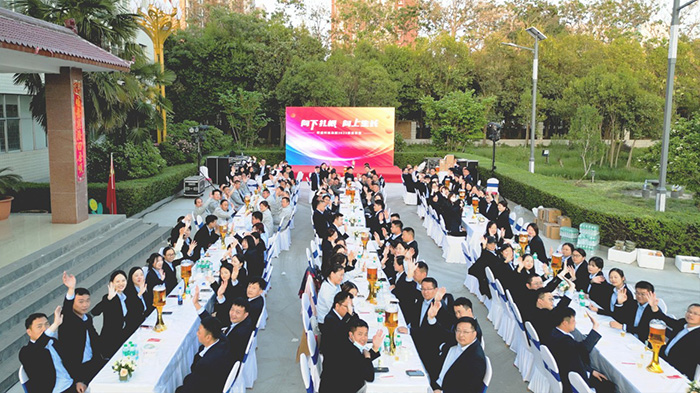 隨著一陣陣歡呼聲,家宴正式拉開序幕,董事長楚科奇及集團管理層共同登臺祝酒,為這個美好的歡聚時刻,與所有家人舉杯慶祝?,F場華燈璀璨,笙歌高揚,家人滿座,笑語滿堂。
