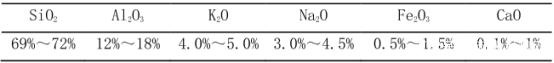 閉孔珍珠巖是選用天然珍珠巖礦經(jīng)過一系列復(fù)雜工藝制得,其工藝過程:珍珠巖原礦→粉碎篩選成珍珠巖礦砂→預(yù)熱→多級加熱→膨脹玻化→冷卻處理→成品。其主要成分如表1。
