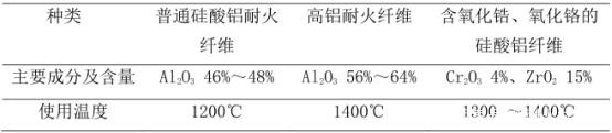 表2 硅酸鋁耐火纖維分類